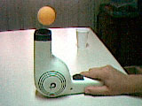 1. Turn on the hair dryer and maintain the air flow up and vertical. 2. Place the ping-pong ball in the center of the air flow imposed by the hair dryer. (you can notice that the ball is in continuous suspension) 3. Move the hair dryer slowly in the horizontal. You can verify that the ball accompanies the movements of the dryer. How do you explain this? |