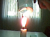 1. Pour water to one of the plastic cups. 2. Fill three forth of the total volume of other plastic cup with sand. 3. Light the candle with a match. (be careful handling matches. When badly used they can produce unexpected accidents) 4. Place the empty plastic cup on the top of the candle flame. Remove the plastic cup when it begins to burn. 5. Place the plastic cup with water on the top of the candle flame. You can verify that the cup doesn't burns. 6. Finally, place the plastic cup with sand on the top of the candle flame. You can verify that the plastic will begin to burn after some seconds. |