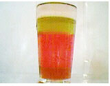 1. Pour some currant in water. (the currant addition is made to make easier the visualization of the liquid phases) 2. Pour the solution of water and currant in the glass. 3. Followed, carefully, pour the olive-oil in the glass. (you can make the addition with the help of a table spoon cable) 4. Then, add the ethyl alcohol.(you can use the same procedure as previously) 5. Finally, add the honey. 6. Now you can verify that the alcohol is in the top. After the alcohol it comes the olive-oil, red colored water and, in the bottom, honey. |