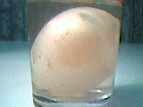 1. Fill half of the total volume of a glass with vinegar. 2. Put the egg inside the glass. What do you observe? (add more vinegar if it doesn't cover the egg totally) 3. Observe the bubbles of gas that are formed in the surface of egg. 4. Observe periodically what happens in the next hours. 5. After one day you will be able to verify that the egg is completely nude and is larger than before. |