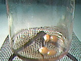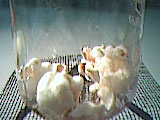 1. Pour some oil in the becker. (the oil should cover the whole surface of the becker) 2. Heat the becker with the alcohol lamp flame. 3. Put some corn grains in the becker. (be careful handling hot glass and oil. They can cause burns) 4. Cover the becker with a paper leaf. (this way the popcorns can't jump out of the becker!) 5. Observe the popcorns exploding. Very nice! |